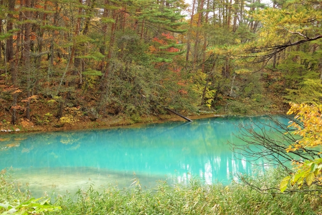 青沼は、他の沼よりも一層神秘的な雰囲気があって、紅葉とのコントラストが楽しめます。最も美しい水の青さが自慢の湖沼なんだそうです。インスタ映え間違いなしですね!