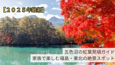 観光情報【2025年最新】五色沼の紅葉見頃ガイド|家族で楽しむ福島・東北の絶景スポット 「今年の紅葉、どこに行こう?」そんな風に悩んでいませんか?関東近郊の有名スポットは人混みでゆっくり楽しめないし、お子様連れだと移動も大変ですよね。私も東北に住んでいながら、実は五色沼にはまだ行けていないんです。山形県酒田市からだと車で3時間... 2025.09.26観光情報