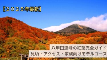 観光情報【2025年最新】八甲田連峰の紅葉完全ガイド|見頃・アクセス・家族向けモデルコース 秋の家族旅行、いつもの観光地じゃ物足りなくなっていませんか? 箱根や日光も素敵だけど、もっと特別な体験を子どもたちにさせてあげたい。そんな想いを抱く40代ファミリーの皆さんに、ぜひおすすめしたいのが青森県の八甲田連峰です。実は私も東京に住ん... 2025.09.25観光情報