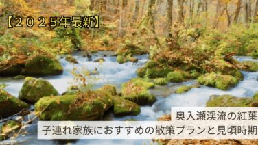 観光情報【2025年版】奥入瀬渓流の紅葉|子連れ家族におすすめの散策プランと見頃時期 「今年の秋はどこに行こう...」と家族で話していた時、私自身も同じことを考えていました。箱根、日光、京都の紅葉は確かに美しいけれど、子連れだとどこも人だらけで写真を撮るのも一苦労。もっと家族でゆっくり紅葉を楽しめる場所はないかしら?そんな想... 2025.09.23観光情報