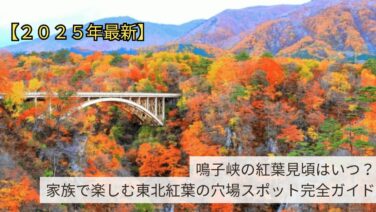 観光情報東北の紅葉 おすすめスポットTOP10【2025年見頃予想付き】家族旅行の決定版 「今年の秋も箱根や日光?」そんなふうに毎年同じ紅葉スポットを巡っていませんか?関東近郊の有名観光地も美しいけれど、人混みに疲れて「ゆっくり家族時間を楽しめなかった…」という経験、きっとお持ちですよね。実際にアンバサダー活動で円通院を訪れた際... 2025.10.01観光情報