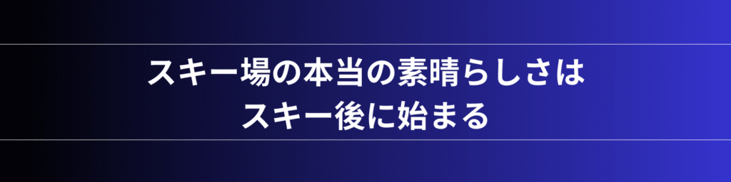 スキー場の本当の素晴らしさは、スキー後に始まる