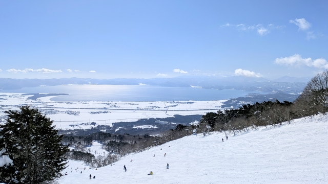 磐梯山と猪苗代湖の絶景を背景に、温泉体験とスキーを組み合わせた、東北でも数少ないウィンターリゾート・猪苗代湖スキー場の存在です。