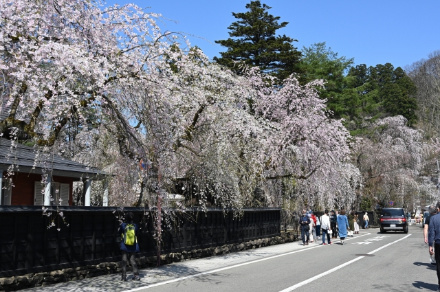 黒板塀の向こうから滝のように垂れ下がる枝垂桜——その光景を初めて見たとき、思わず声が出ました。「小京都」と呼ばれるだけあって、どこを切り取っても絵になる町です。