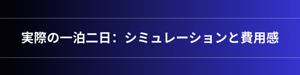 「あ、思ったより安い」と感じた方も多いはず。実は、せっかくの一泊二日だから、費用を最適化して、その分別の体験に使うというアプローチがおすすめなんです。