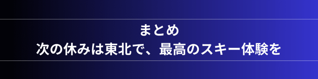 - まとめ:次の休みは東北で、最高のスキー体験を