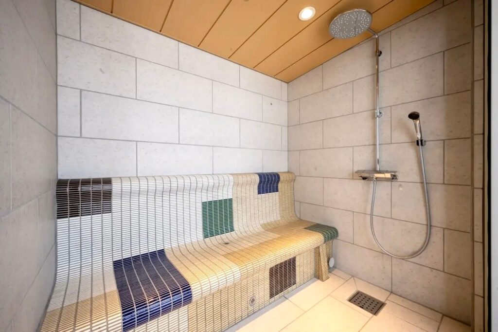 「サウナは熱くて苦しい」というパートナーにこそ試してほしい一室。温度45度・湿度100%で息苦しさや肌のヒリヒリがほとんどなく、じんわりと体の芯から温まります。バリアフリー設計で車いすのまま入室できるのも特徴です。