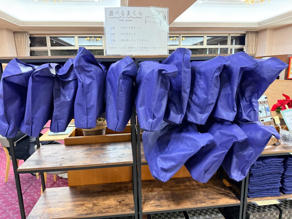 特に女性に嬉しいのが5種類から選べる枕。高さや硬さが違うので、自分に合ったものを選べば、旅先でもぐっすり眠れます。私も実際に試しましたが、この気配りが本当にありがたかったです。