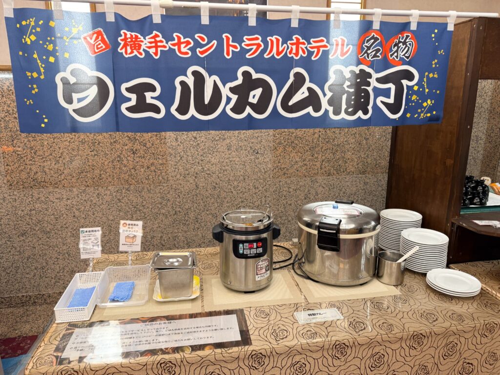横手セントラルホテルの最大の特徴は、17:30〜21:00に1階ロビーで提供される無料の夕食サービスです。
